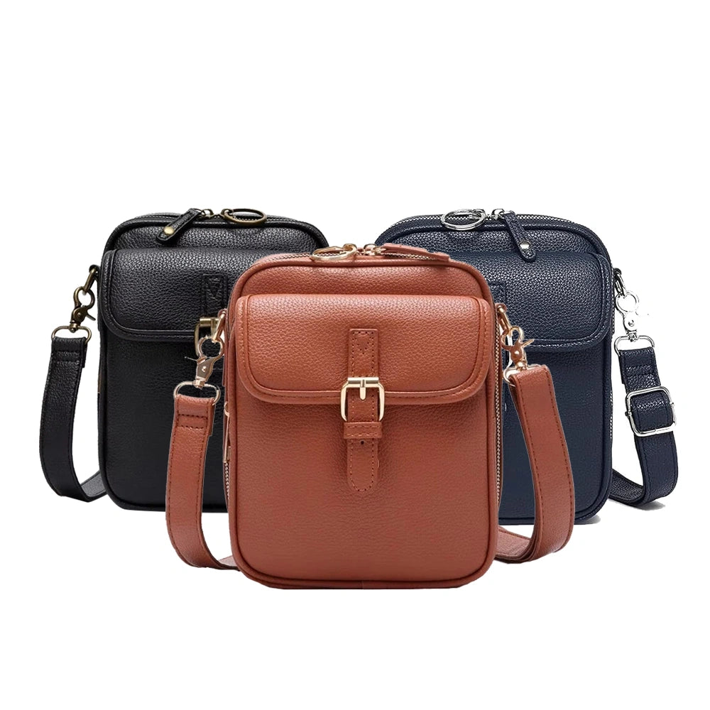 Don’t let its compact look fool you, this bag is built for functionality. The main compartment fits your phone, wallet, passport, keys, and even a mini tablet. An exterior pocket with a stylish buckle adds quick access to essentials while keeping your look sharp.