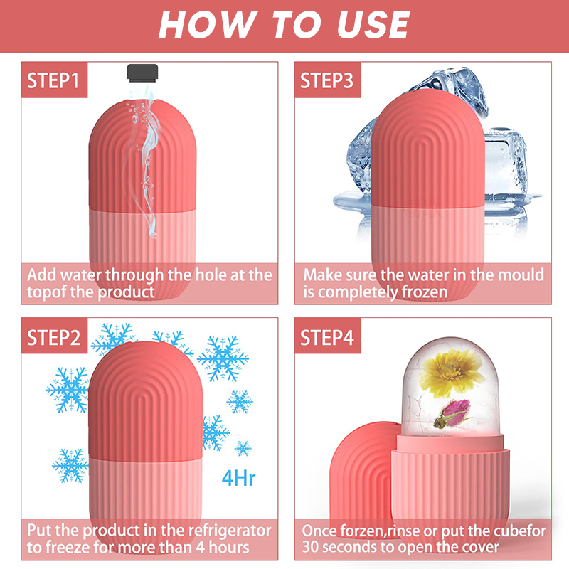 This ice roller for face is made of high-quality silicone material, which is durable and reusable. When frozen, the trophy-shaped base reduces the risk of tipping. And the ice cube stays frozen for longer thanks to the insulated design. Refillable for a fresh and clean cube each use.