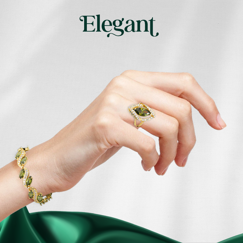 Stella 18K Yellow Gold Peridot Ruby Pendant Earring Bracelet & Ring Set For Women
